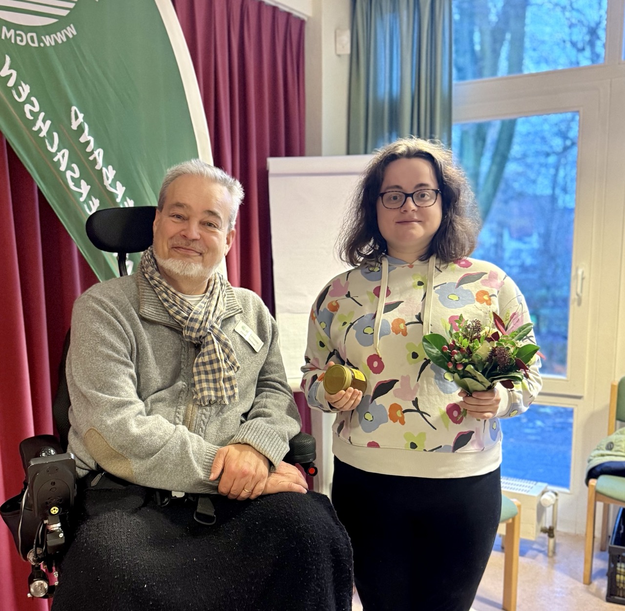 Wir danken Patricia ganz herzlich für ihr Engagement und wünschen ihr alles Gute für die letzten Wochen ihrer Schwangerschaft. Wir freuen uns, dass sie weiterhin Kontaktperson im Landesverband bleibt und sich auch zukünftig dem Thema „Eltern und Kinder“ widmen wird. Beim allgemeinen DGM-Gruppentreffen in Emden am 29. November haben wir Patricia gebührend gedankt!